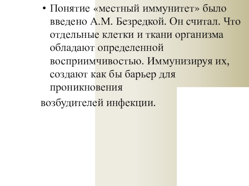 Слайд 8Понятие «местный иммунитет» было введено А.М. Безредкой. Он считал. Что отдельные