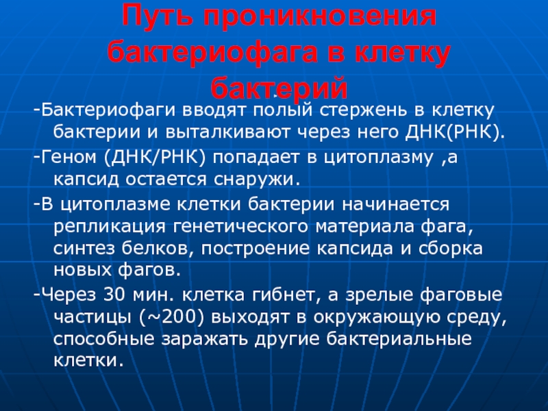 Слайд 24Путь проникновения бактериофага в клетку бактерий