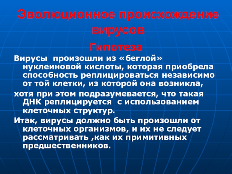 Итак, вирусы должно быть произошли от клеточных организмов, и их не следует рассматривать ,как их примитивных предшественников.