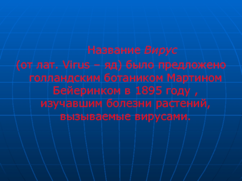 предложено голландским ботаником Мартином Бейеринком в 1895 году , изучавшим болезни растений, вызываемые вирусами.