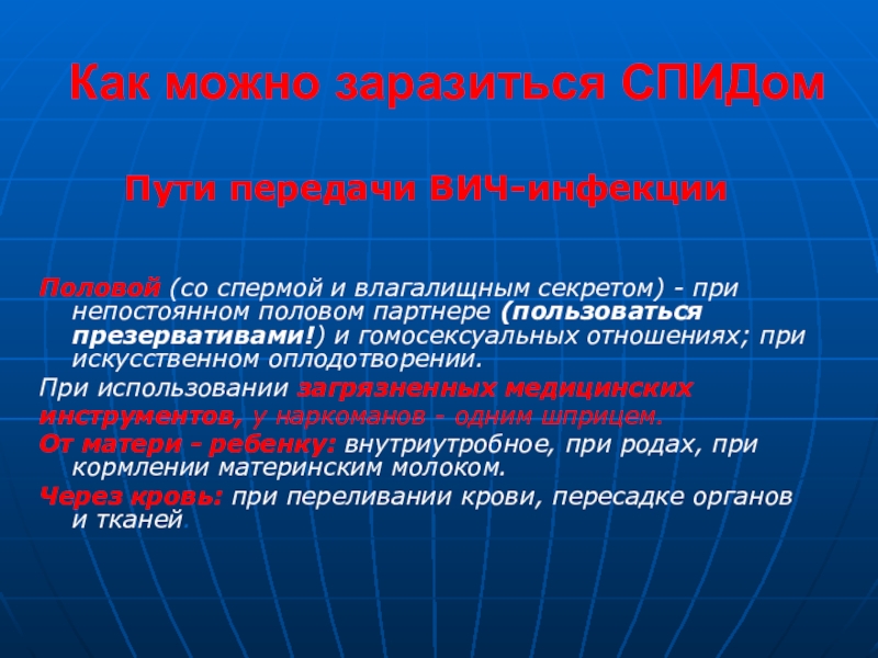 - при непостоянном половом партнере (пользоваться презервативами!) и гомосексуальных отношениях; при искусственном оплодотворении.