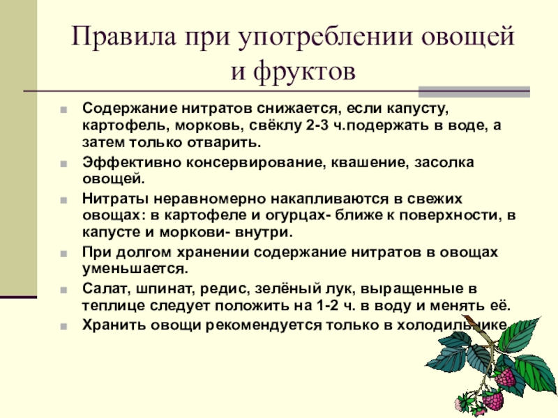 При долгом хранении содержание нитратов в овощах уменьшается.