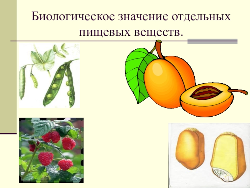 Слайд 4Биологическое значение отдельных пищевых веществ.
