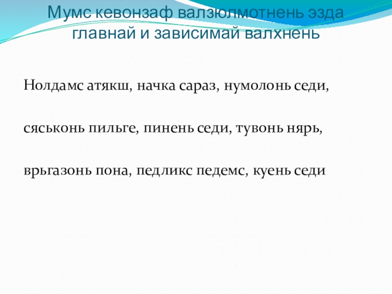 Слайд 12Мумс кевонзаф валзюлмотнень эзда главнай и зависимай валхнень