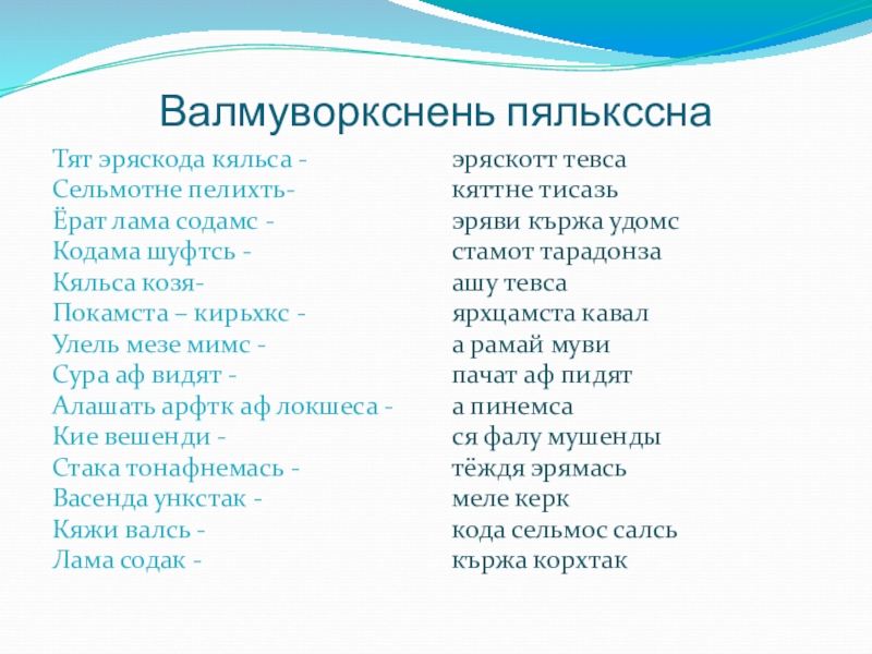 Слайд 4Валмуворкснень пялькссна