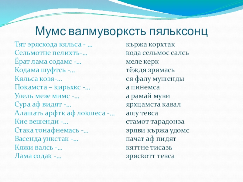 Слайд 10Мук ялгацень