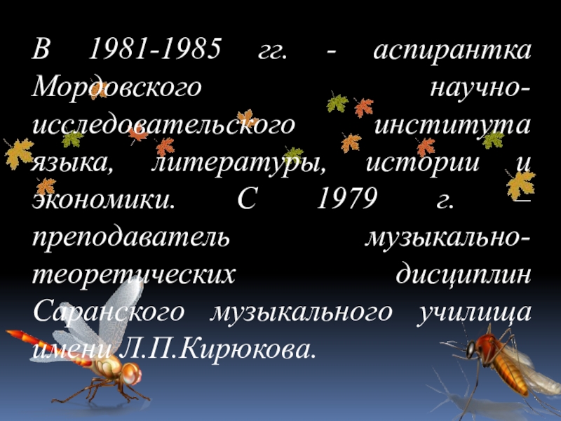 Слайд 4В 1981-1985 гг. - аспирантка Мордовского научно-исследовательского института языка, литературы, истории