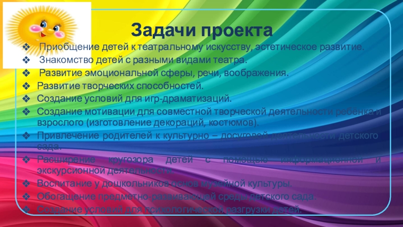 Исходя из этого, данный проект направлен на приобщение детей дошкольного возраста к театрализованной деятельности, что способствует освоению мира человеческих чувств, коммуникативных навыков, развитию способности к сопереживанию.