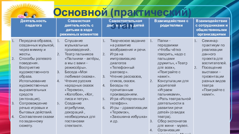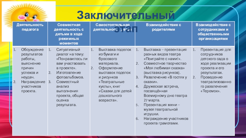 Заключительный этап - Подведение итогов. Презентация для сотрудников детского сада о ходе реализации проекта и его результатах. Проведение театрализованного развлечения «Теремок».