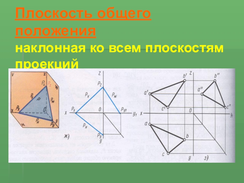 Слайд 8Плоскость общего положения наклонная ко всем плоскостям проекций