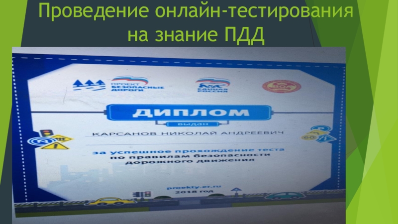 Слайд 22Проведение онлайн-тестирования на знание ПДД