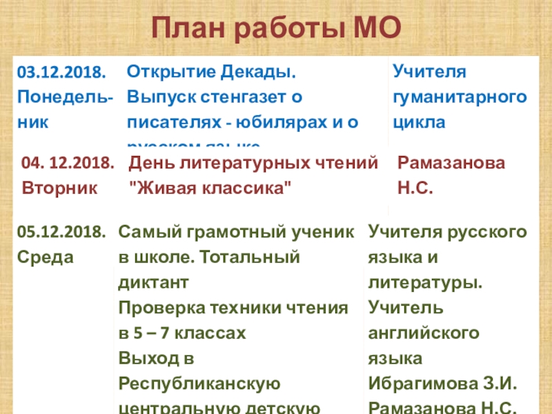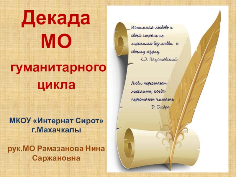 Слайд 1Декада МО гуманитарного цикла МКОУ «Интернат Сирот» г.Махачкалы рук.МО Рамазанова Нина Саржановна