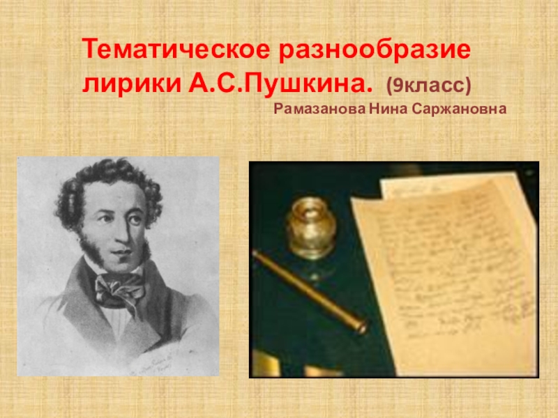 Тематическое разнообразие  лирики А.С.Пушкина. (9класс)Рамазанова Нина Саржановна