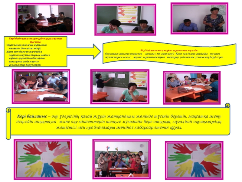 Оқушының жасаған жұмысын «жақсы» деп атап өтуі; Қате көп болған жағдайда оқушыға жұмыстарын немесе жұмыс қорытындыларын жақсарту үшін нақты ұсыныстар беруі керек.