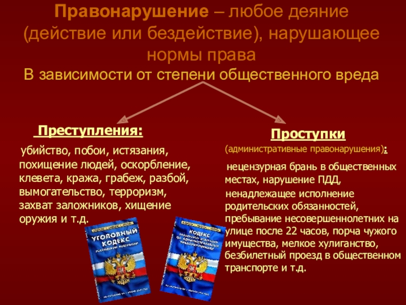 убийство, побои, истязания, похищение людей, оскорбление, клевета, кража, грабеж, разбой, вымогательство, терроризм, захват заложников, хищение оружия и т.д.