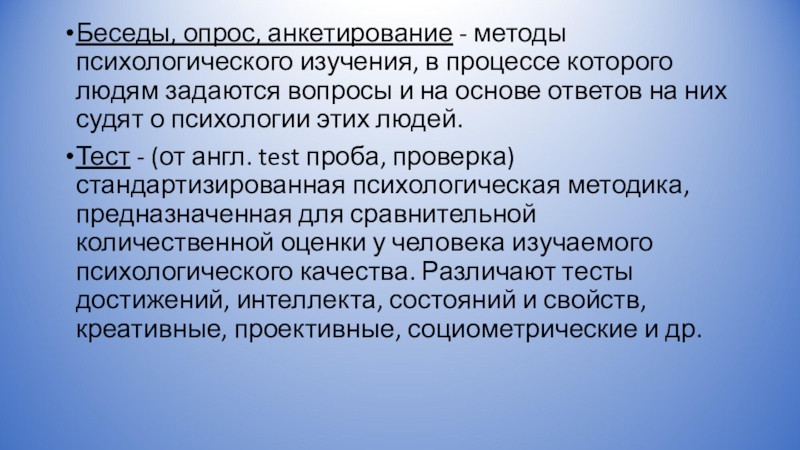 Эксперимент (лабораторный, естественный, психолого- педагогический)