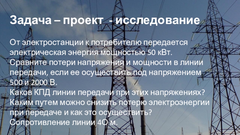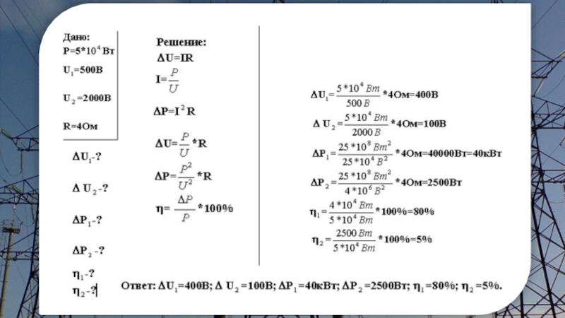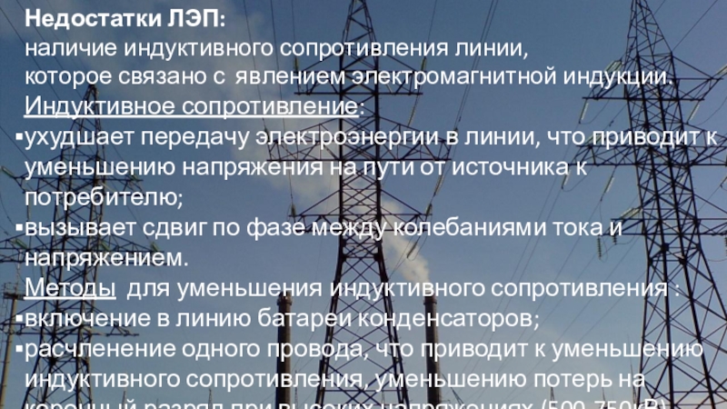 Слайд 51 Главный путь уменьшения потерь мощности в проводах ЛЭП