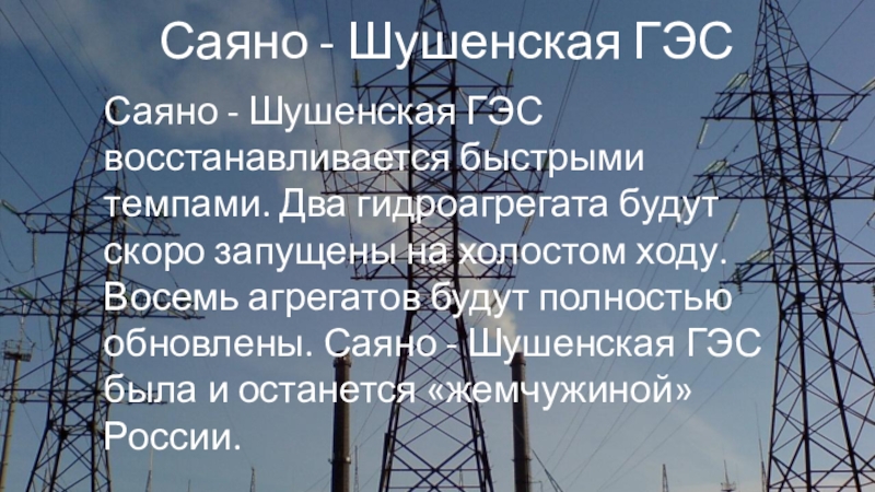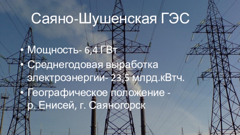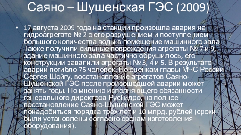 Слайд 36Саяно – Шушенская ГЭС (2009)