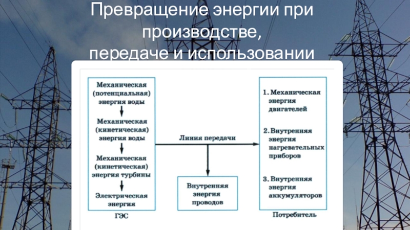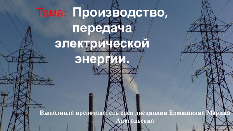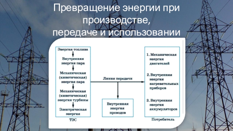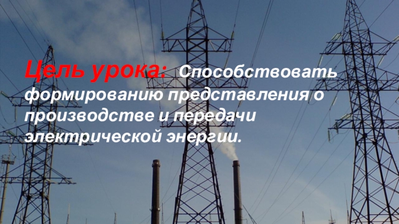 Цель урока: Способствовать формированию представления о производстве и передачи электрической энергии.