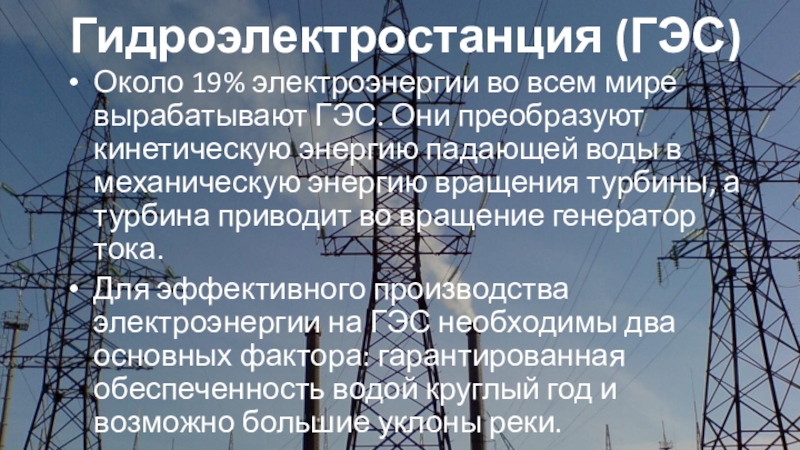 Около 19% электроэнергии во всем мире вырабатывают ГЭС. Они преобразуют