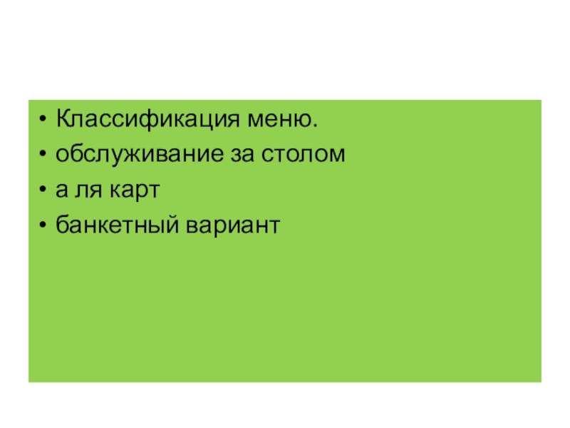 Слайд 36Классификация меню.