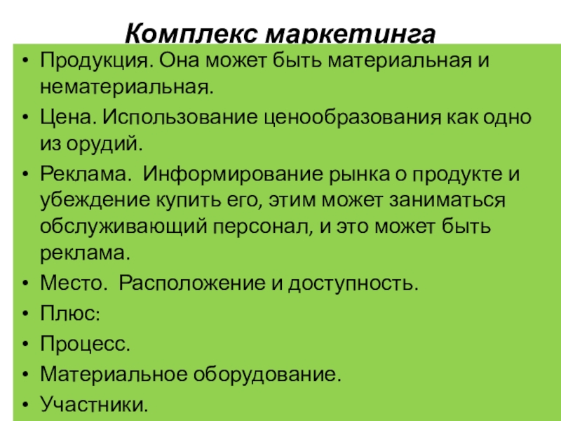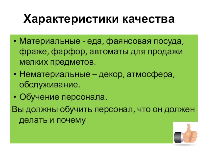 Нематериальные – декор, атмосфера, обслуживание.