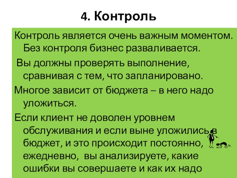 Контроль является очень важным моментом. Без контроля бизнес разваливается.