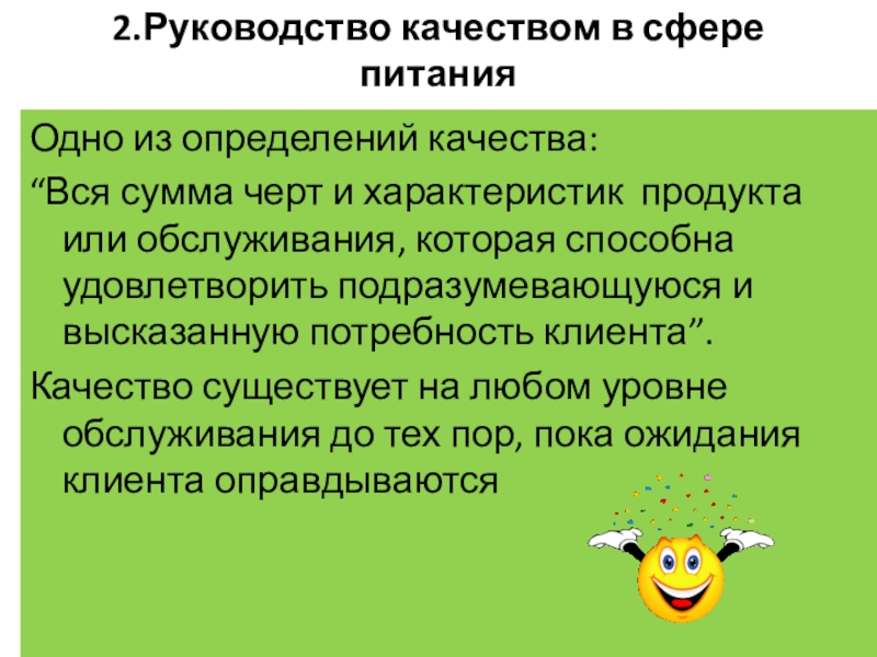 Слайд 122.Руководство качеством в сфере питания