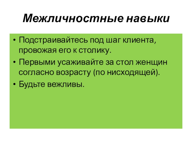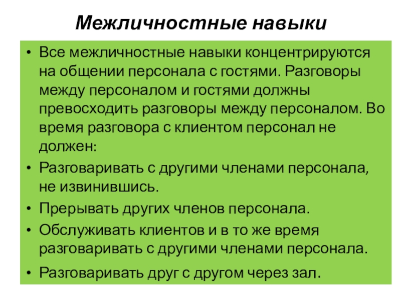 Все межличностные навыки концентрируются на общении персонала с гостями. Разговоры