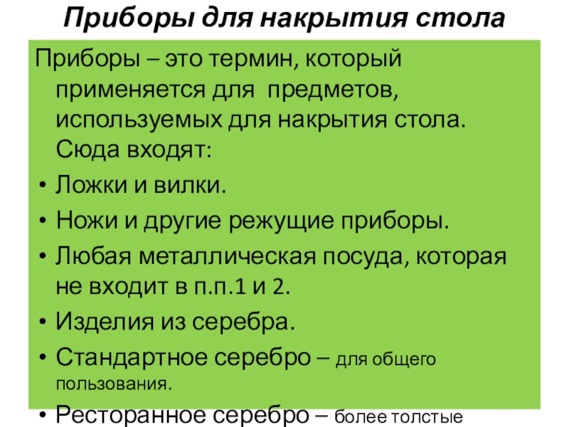Приборы для накрытия стола