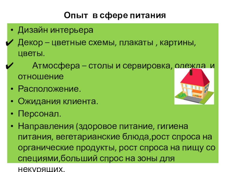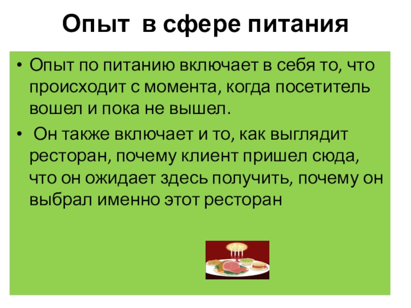 Слайд 10Опыт в сфере питания