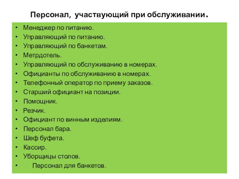 Персонал для банкетов.