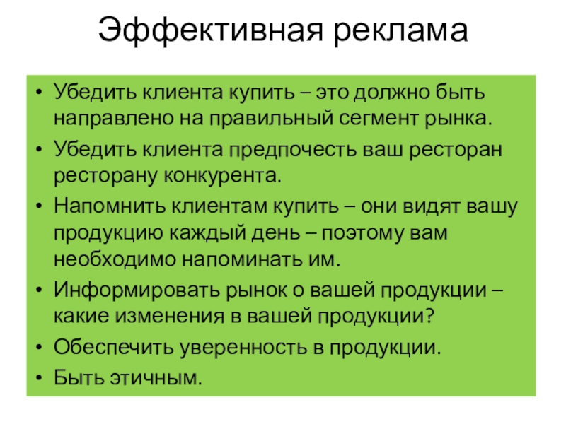 Слайд 153.Маркетинг и реклама в сфере питания