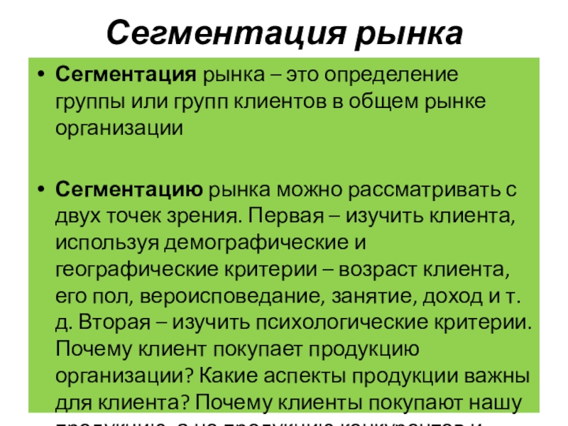 Маркетинг – определение рынка, который будет поставлять провизию.
