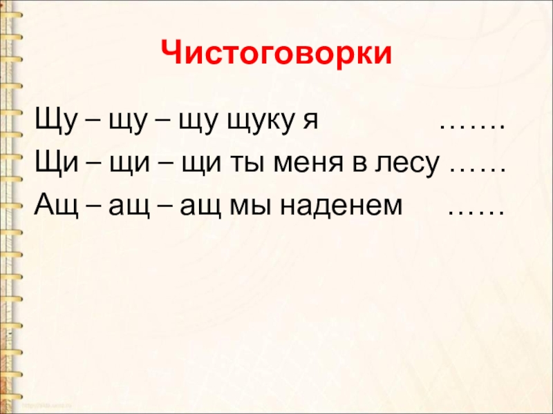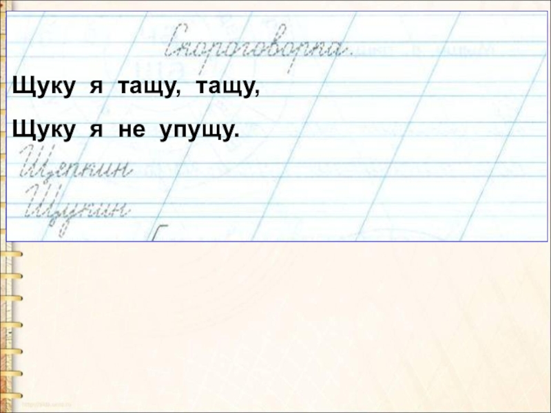 ЧистоговоркиЩу – щу – щу щуку я                ……. Щи –