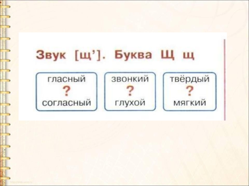 Слайд 1Согласный мягкий звук [щ’] Буквы Щщ