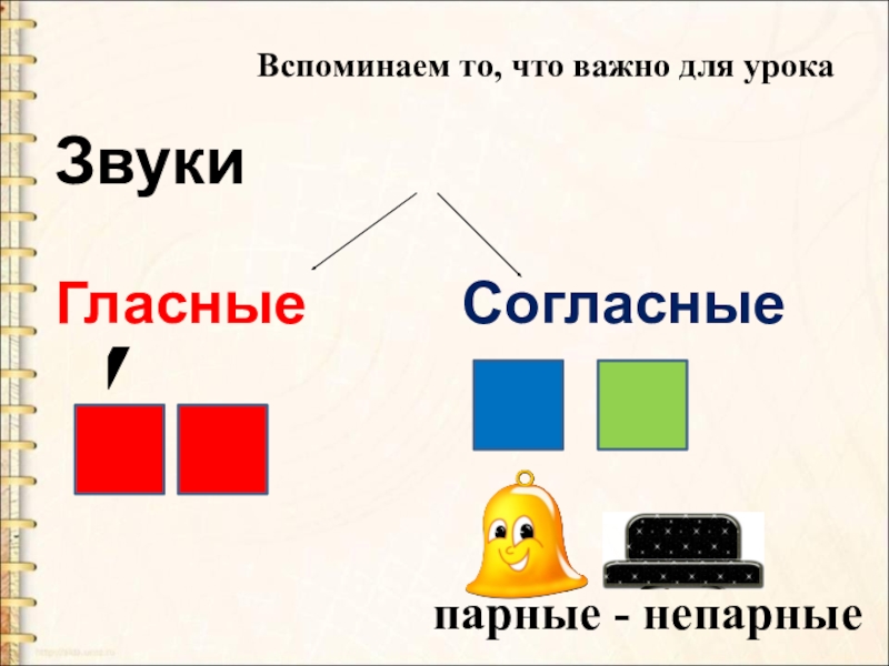 Вспоминаем то, что важно для урока ЗвукиГласные       Согласныепарные - непарные