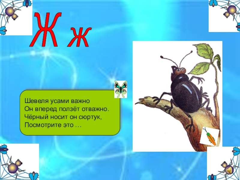 ж Ж Шевеля усами важноОн вперед ползёт отважно.Чёрный носит он сюртук,Посмотрите это …