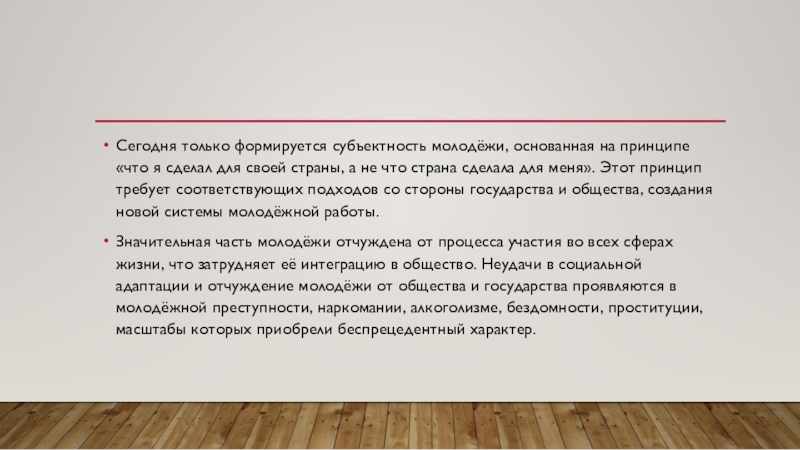 Слайд 7Сегодня только формируется субъектность молодёжи, основанная на принципе «что я сделал
