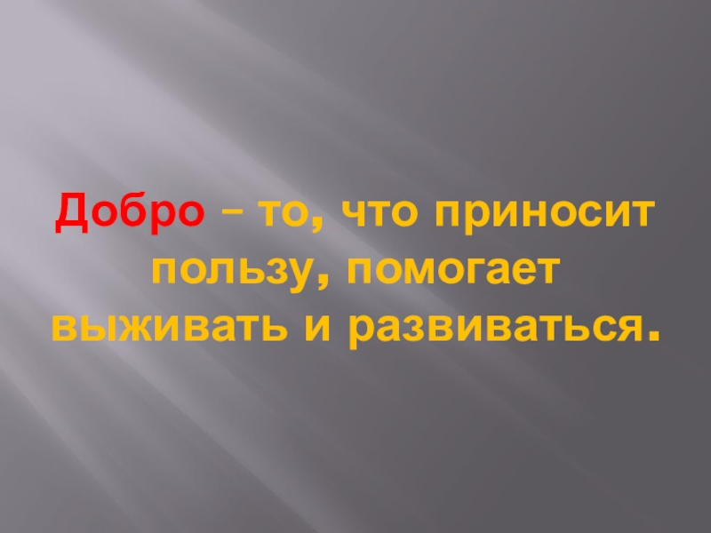 Слайд 4Добро – то, что приносит пользу, помогает выживать и развиваться.