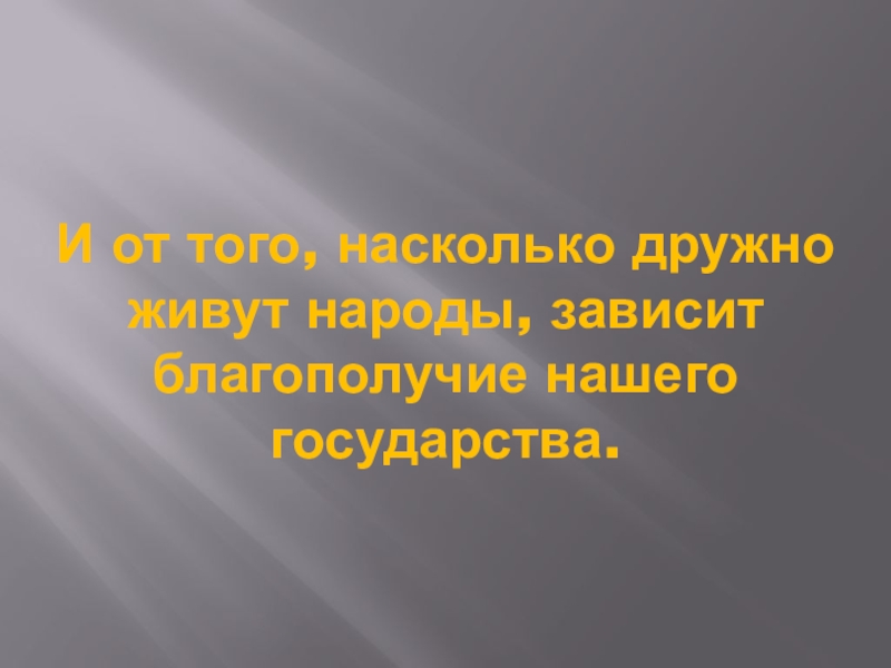 Слайд 24И от того, насколько дружно живут народы, зависит благополучие нашего государства.