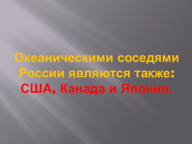 Слайд 18Океаническими соседями России являются также: США, Канада и Япония.