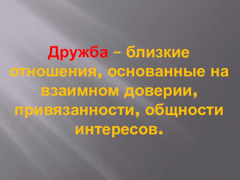 Слайд 6Дружба – близкие отношения, основанные на взаимном доверии, привязанности, общности интересов.