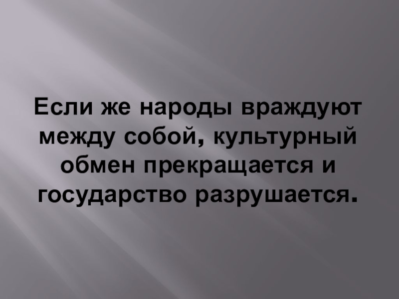 Слайд 27Если же народы враждуют между собой, культурный обмен прекращается и государство