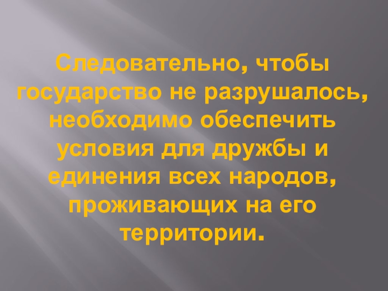 Следовательно, чтобы государство не разрушалось, необходимо обеспечить условия для дружбы и единения всех народов, проживающих на его