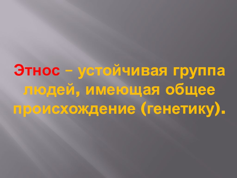 Слайд 9Этнос – устойчивая группа людей, имеющая общее происхождение (генетику).