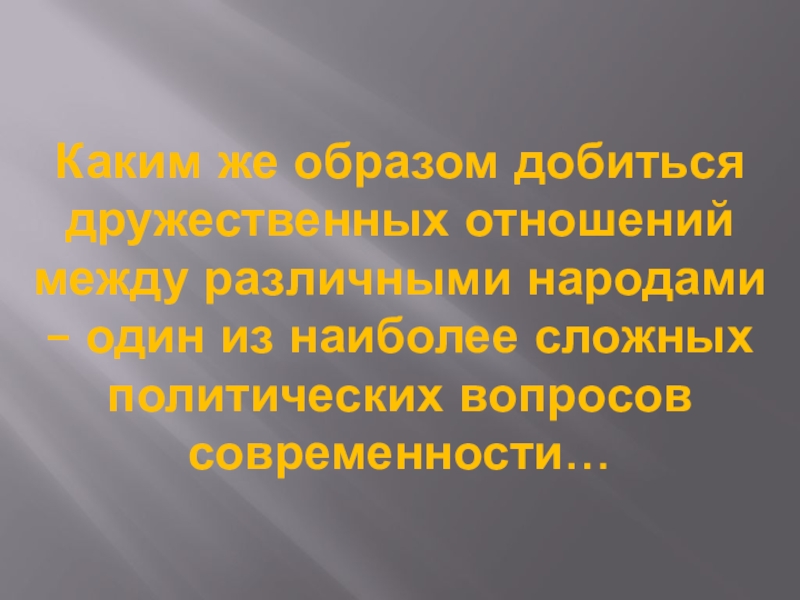 Каким же образом добиться дружественных отношений между различными народами – один из наиболее сложных политических вопросов современности…