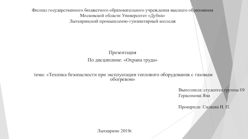 тема: «Техника безопасности при эксплуатации теплового оборудования с газовым обогревом»