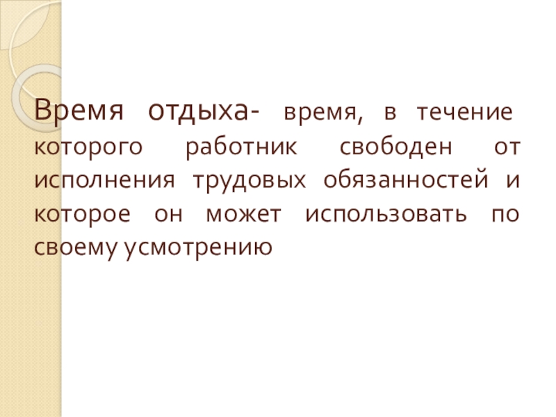 Слайд 6Время отдыха- время, в течение которого работник свободен от исполнения трудовых