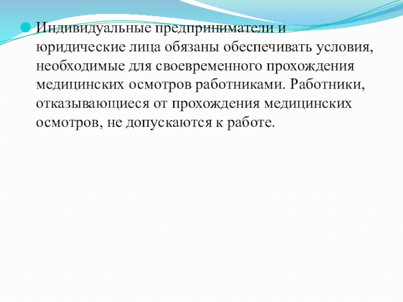 Слайд 12Индивидуальные предприниматели и юридические лица обязаны обеспечивать условия, необходимые для своевременного